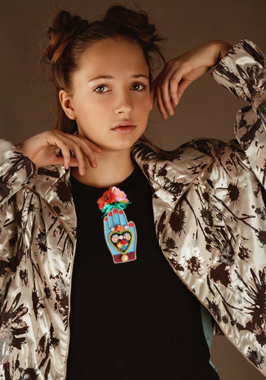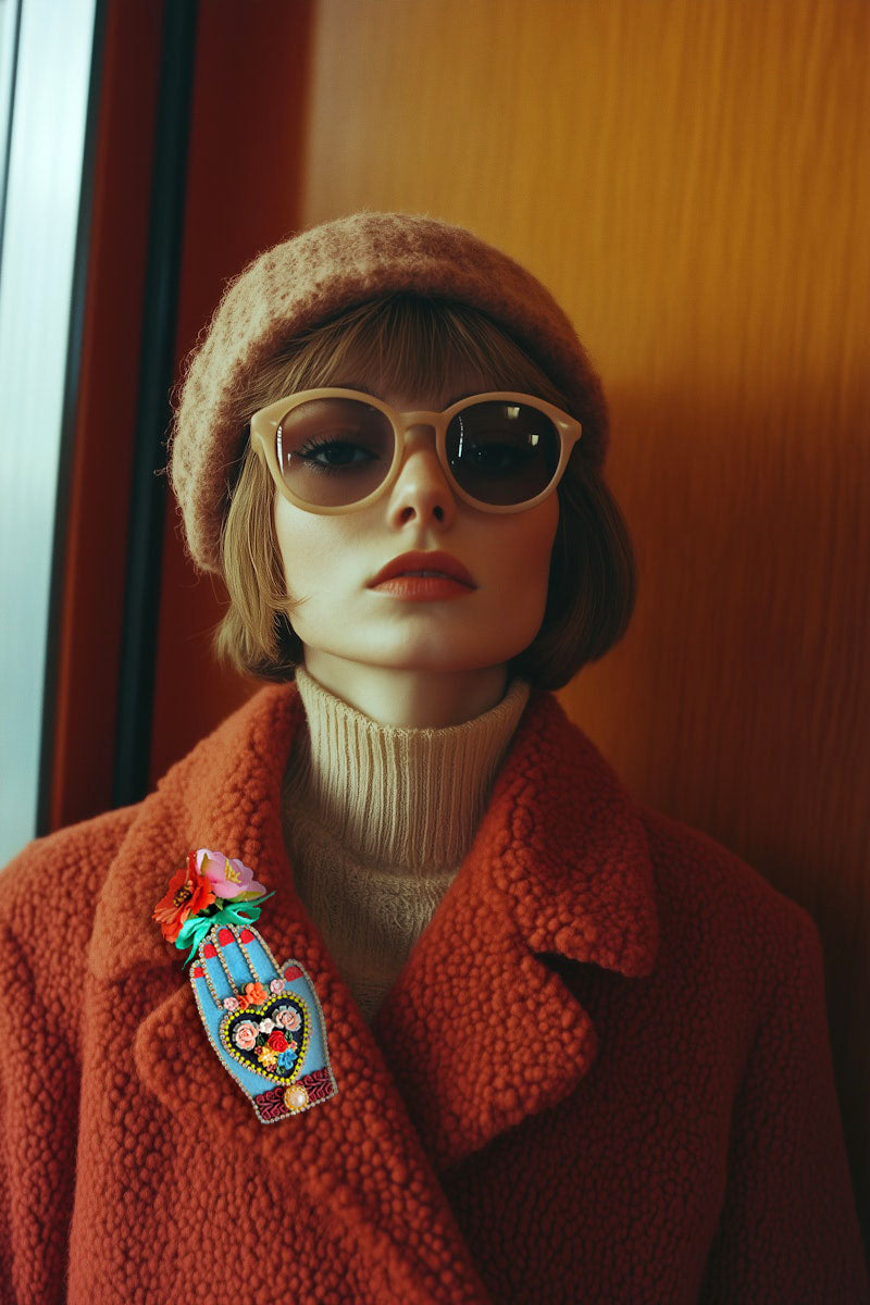 broche main bleue