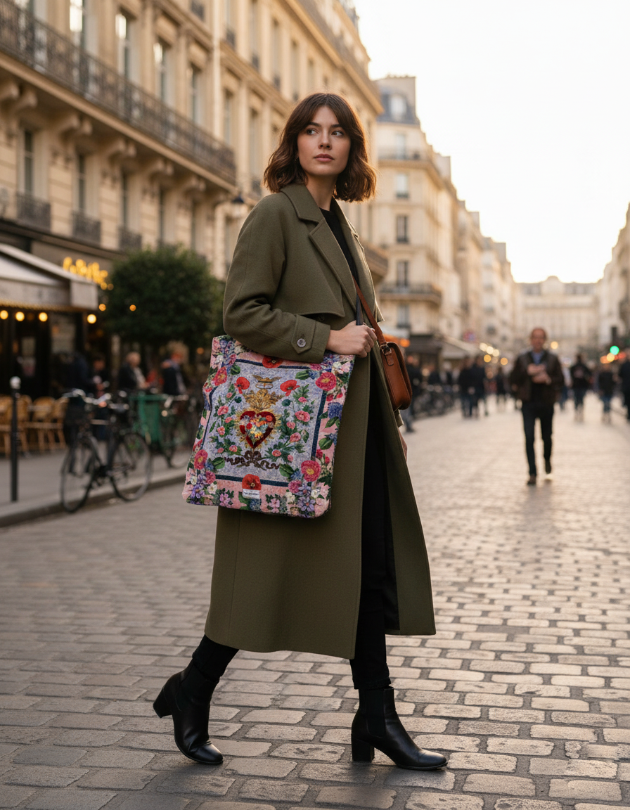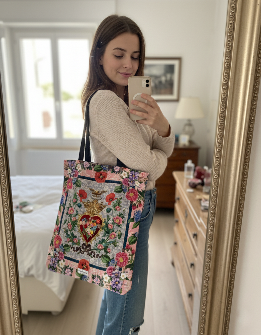 A stunning designer bag for a unique couture style, printed on both sides on high quality Italian velvet. The essential fashion accessory to enhance each of your outfits.