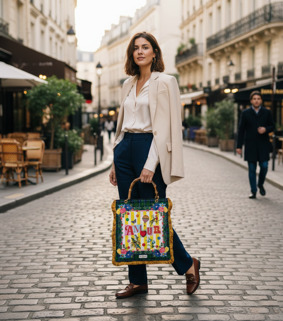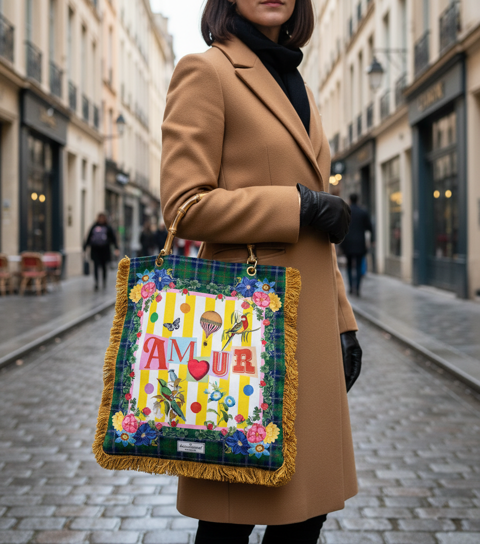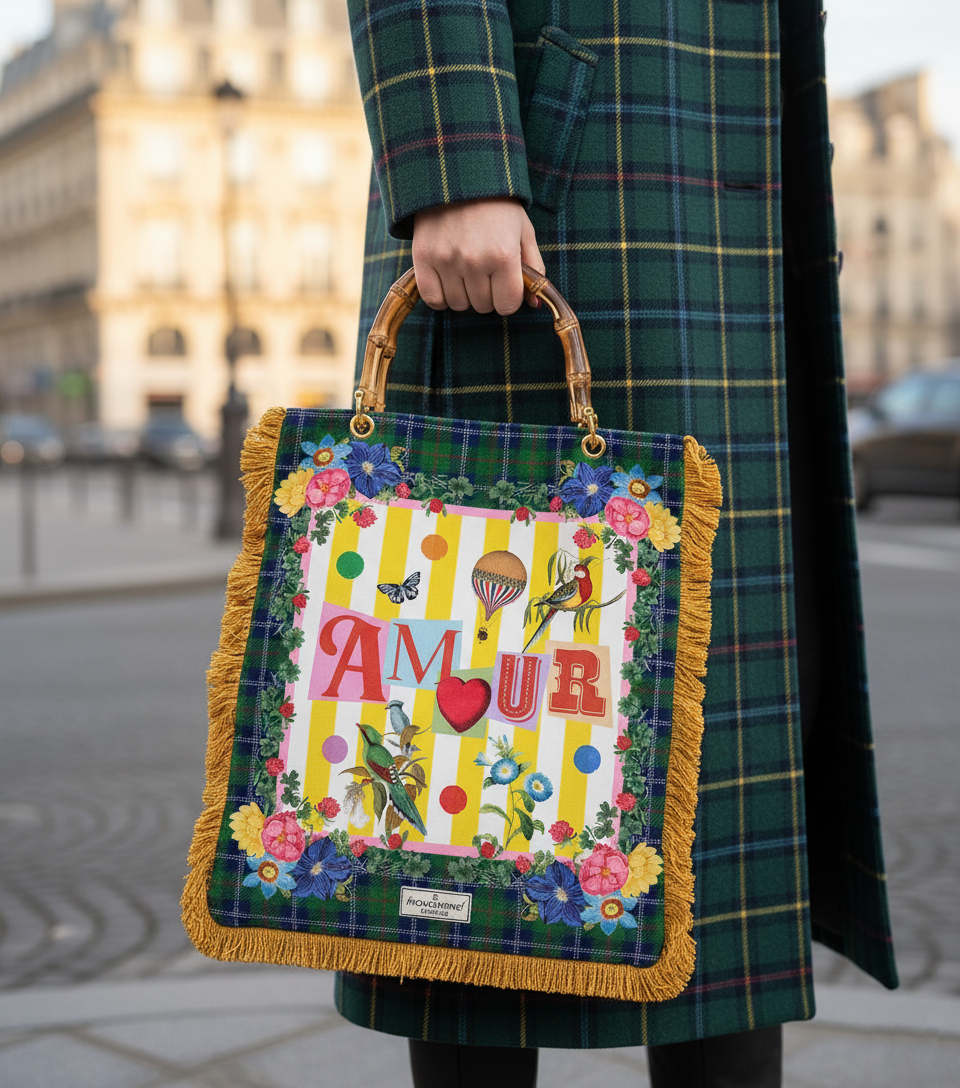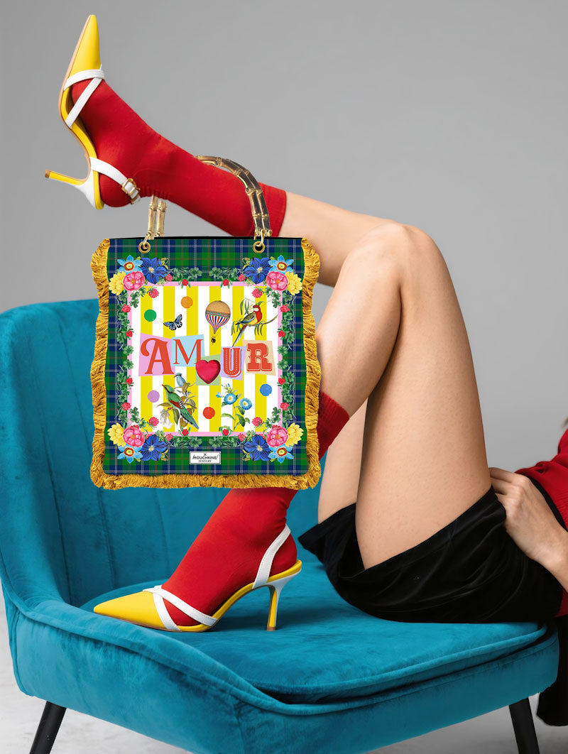 Un sac de créateur pour un style couture unique, imprimé recto-verso sur velours italien haute qualité. L'accessoire de mode indispensable pour sublimer chacune de vos tenues.
