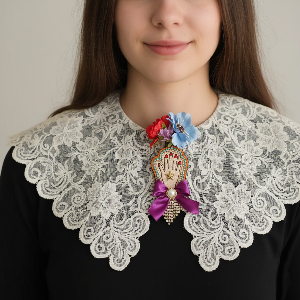 Les bijoux Mouchkine Jewelry sont tous tait main en France par nos soins en quantité ultra limitée, composés de feutrine, fleurs en céramique, résine, cristal de Swarovski...