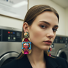 Boucles d'oreilles Mouchkine Jewelry French Riviera. Une base en feutrine pour un poids très léger et un réel confort & plaisir à porter. Entièrement réalisé à la main & made in France, un bijou "haute couture" composé de délicates fleurs en céramique, entourées de cristaux swarovski roses et rouges pour sublimer votre style. Une pièce de charme pour un look stylé unique.