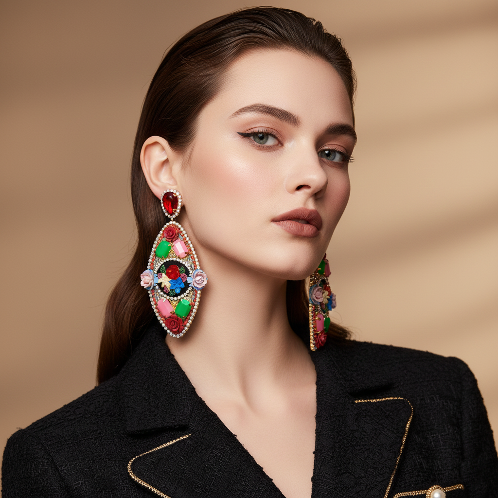 Boucles d'oreilles longues si élégantes Mouchkine Jewelry. Une base en feutrine pour un poids très léger et un réel confort & plaisir à porter. Entièrement fait main & made in France, un bijou "haute couture" pour sublimer votre style avec originalité, composé d'élégantes fleurs en résine & de cristal Swarovski rouge. Une pièce de charme pour un look unique.