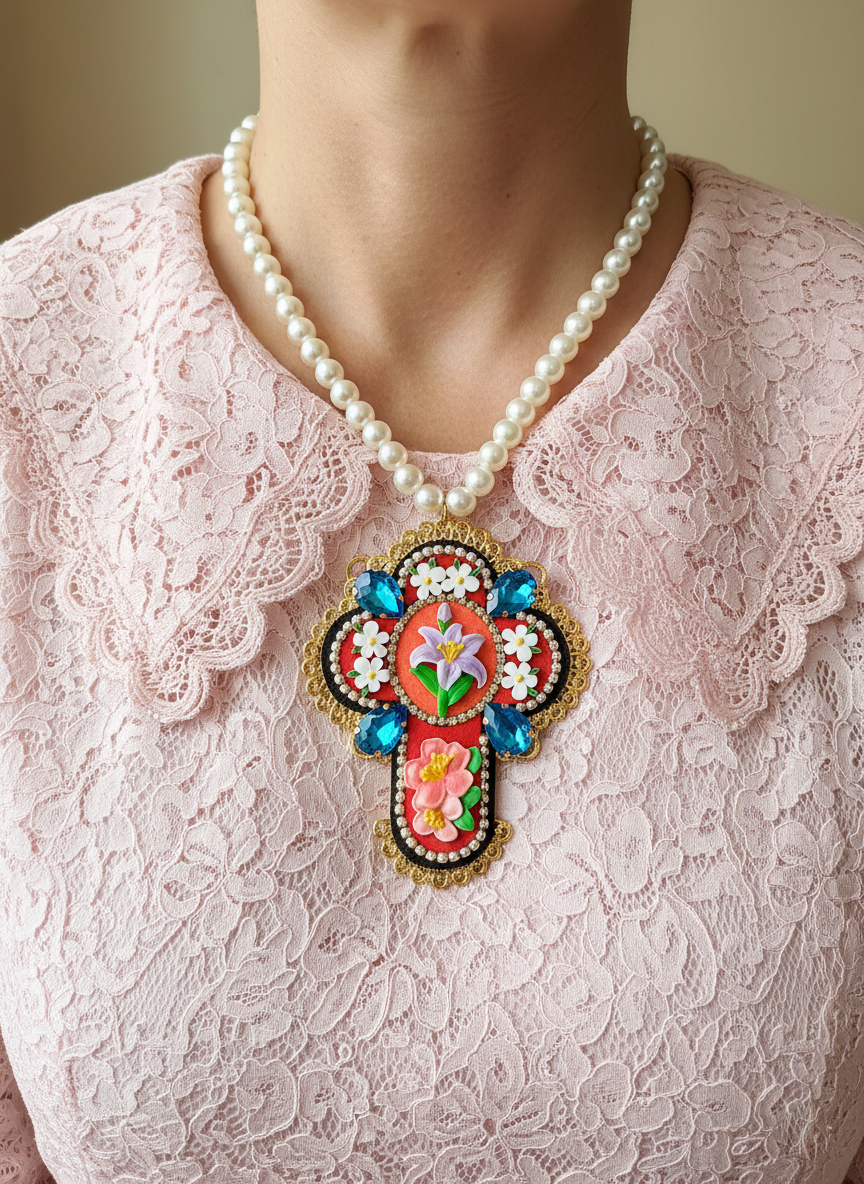 collier croix Lys Royal