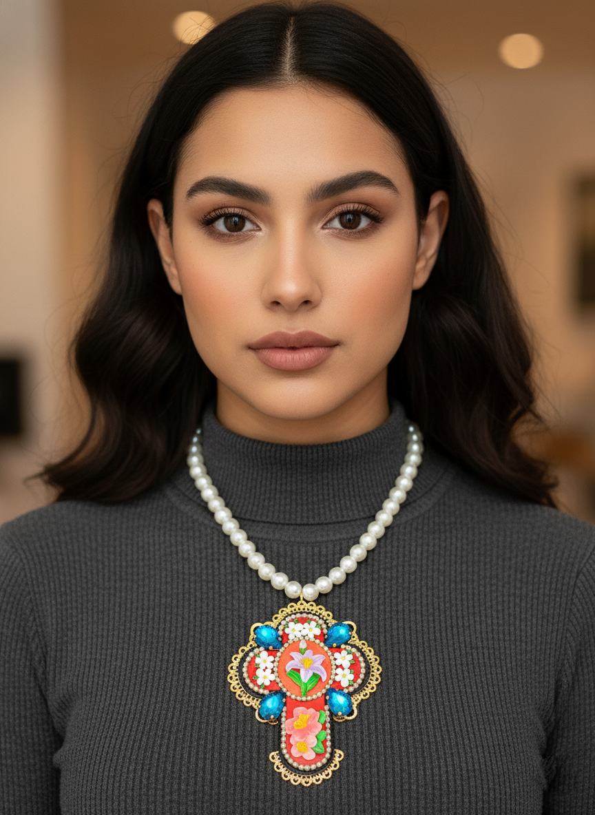 Ce collier élégant et affirmé est bien plus qu'un accessoire : il sera la pièce majeure qui fera toute la différence dans votre style. Chic et tendance, une création haute couture fabriquée à la main en France en quantité ultra limitée.