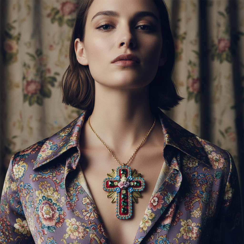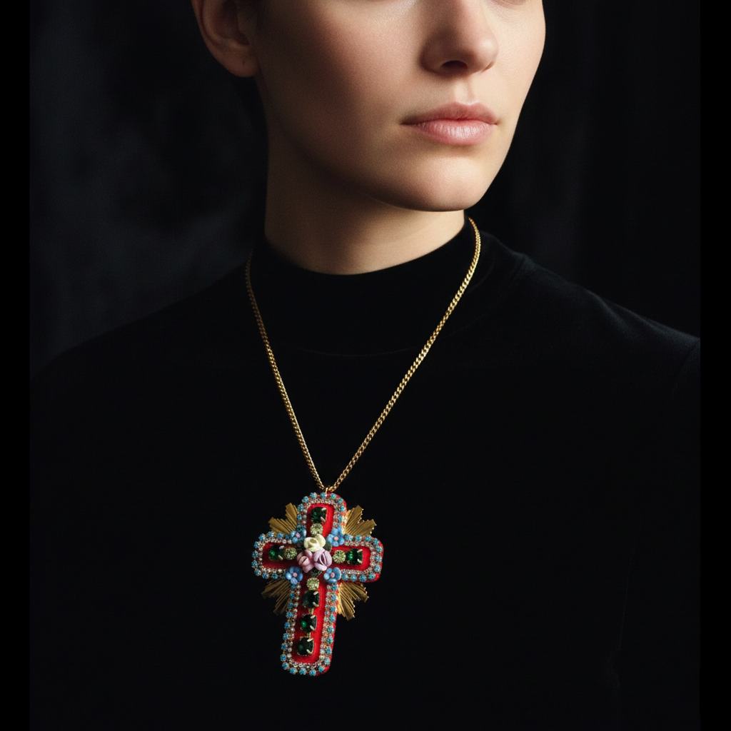 mouchkine jewelry red cross pendant necklace handmade in france