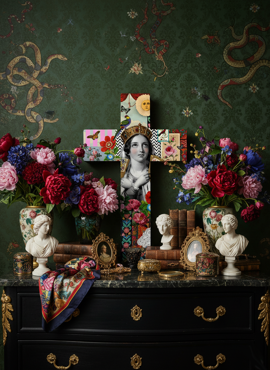 Pour une décoration élégante et créative au style cabinet de curiosités, avec ces bondieuseries bienveillantes aux allures de gris-gris porte bonheur.