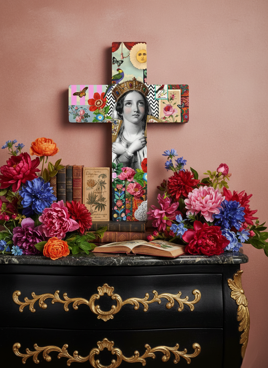 Superbe croix décorative, à poser sur une console, une table basse ou à suspendre au mur.