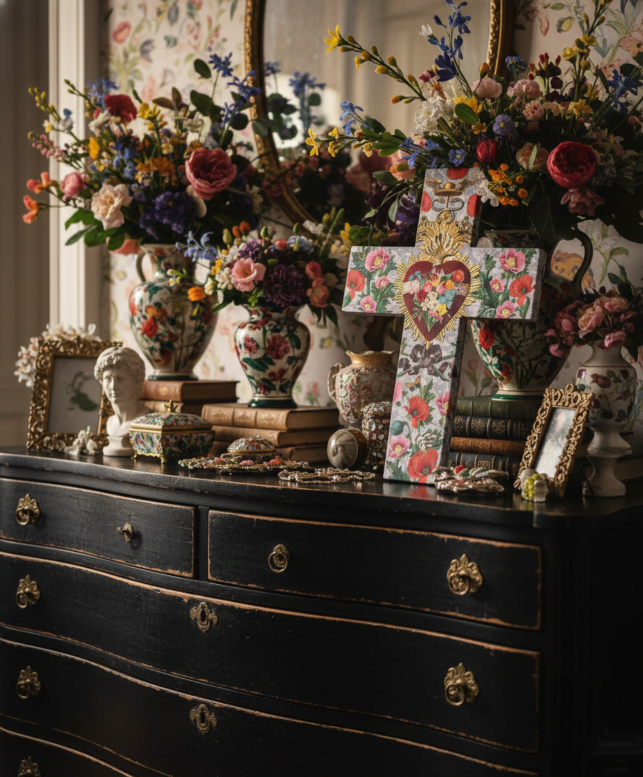 Pour une décoration élégante et créative au style cabinet de curiosités, avec ces bondieuseries bienveillantes aux allures de gris-gris porte bonheur.