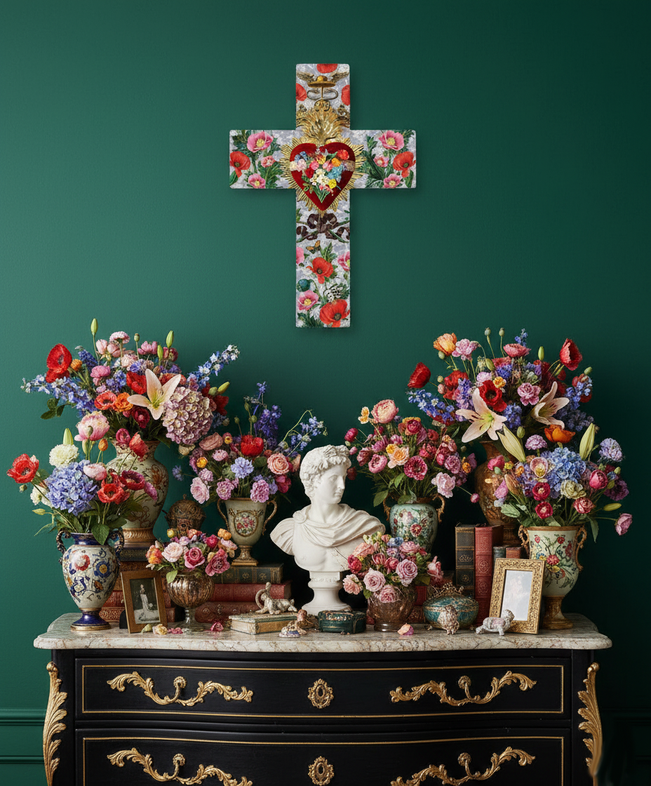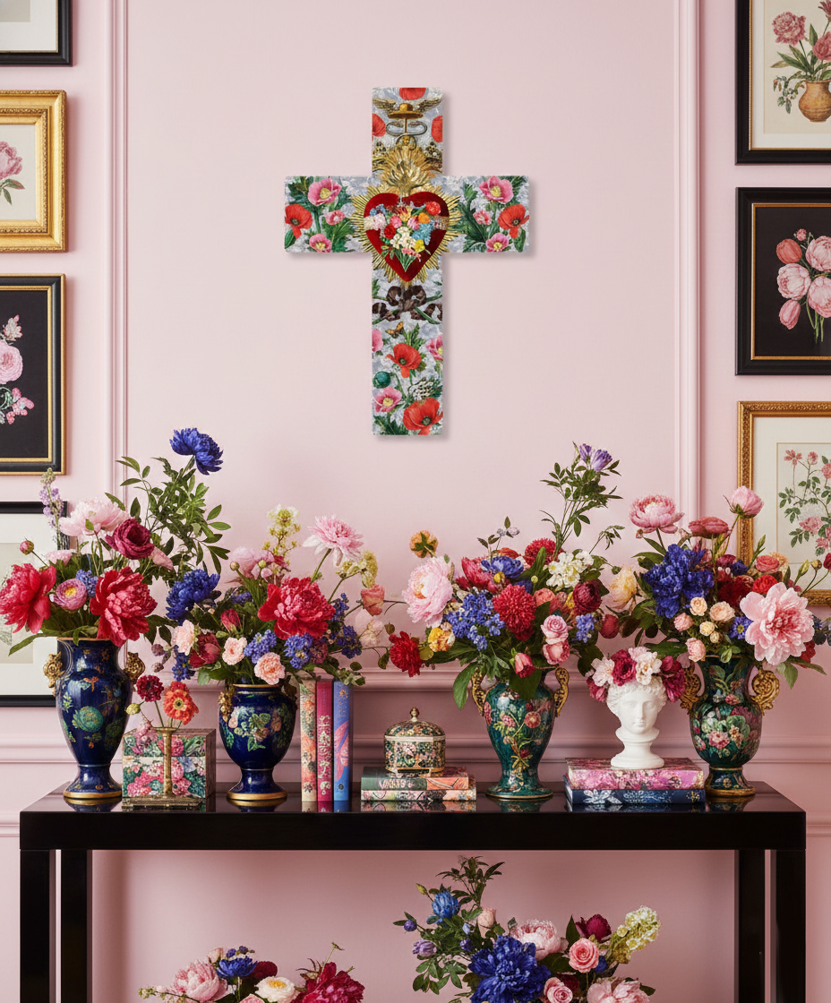 Superbe croix décorative, à poser sur une console, une table basse ou à suspendre au mur.