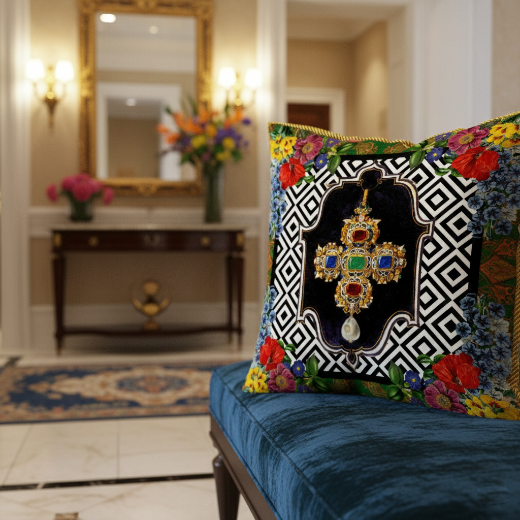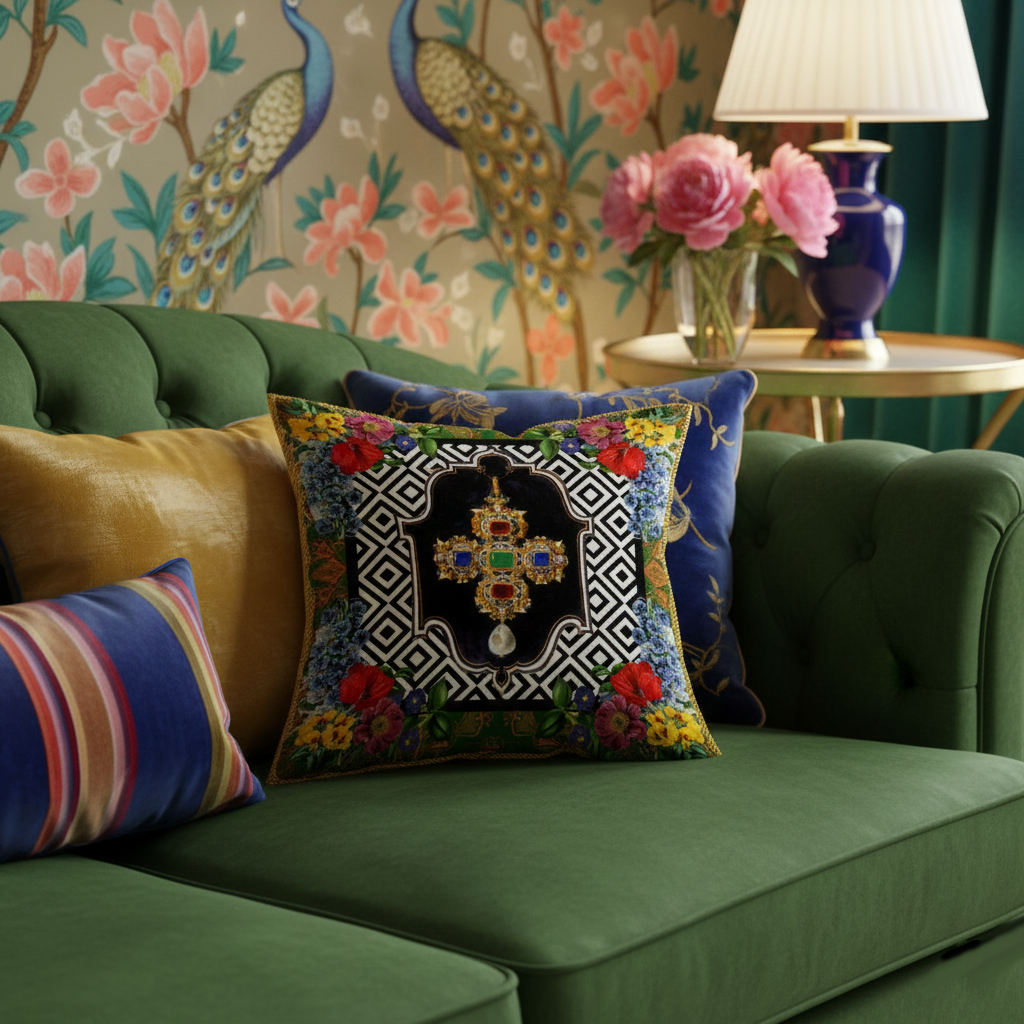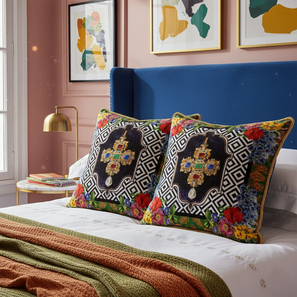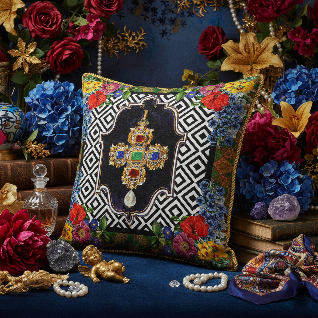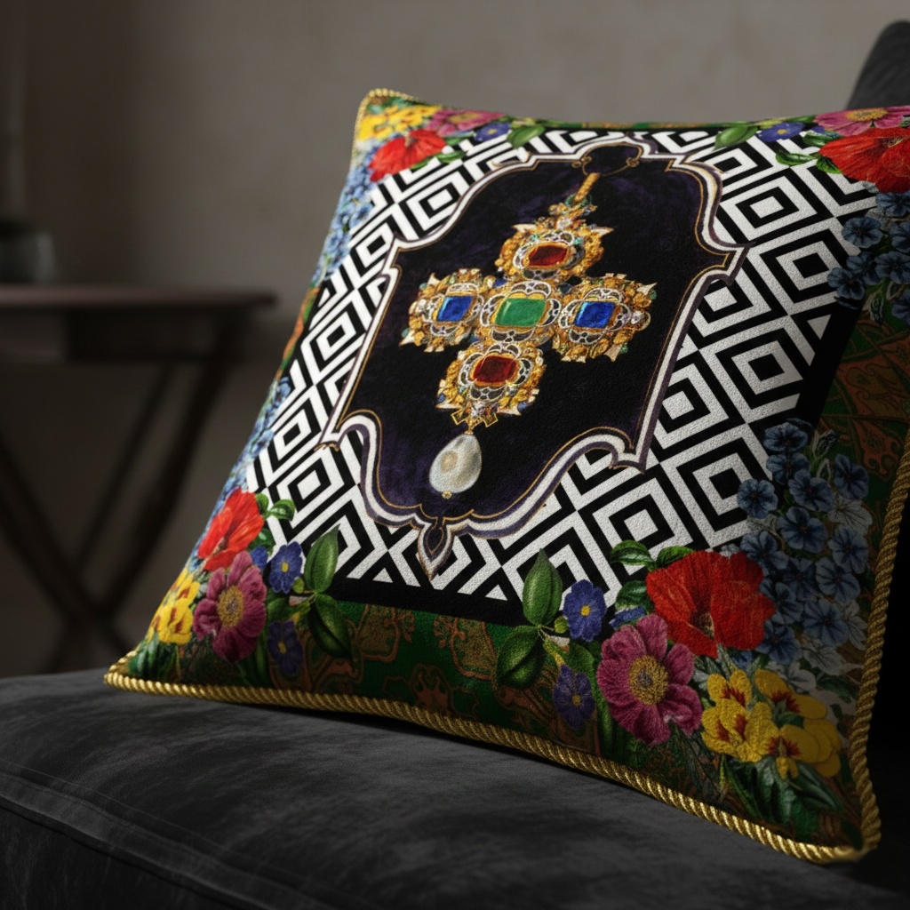 An elegant high-end cushion, with an exclusive design created by Mouchkine Paris, for a chic and sophisticated interior decoration. A different print on the front or back to change the visual according to your mood...