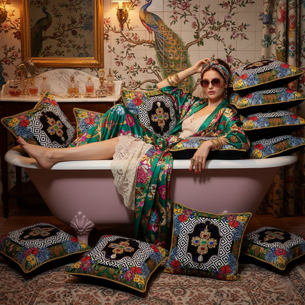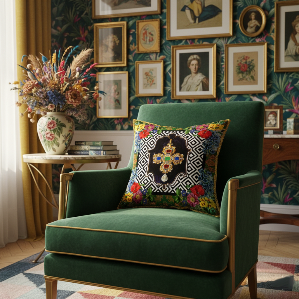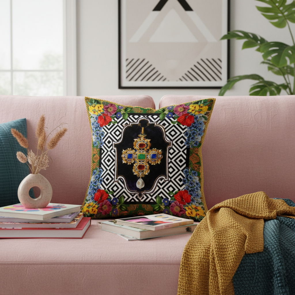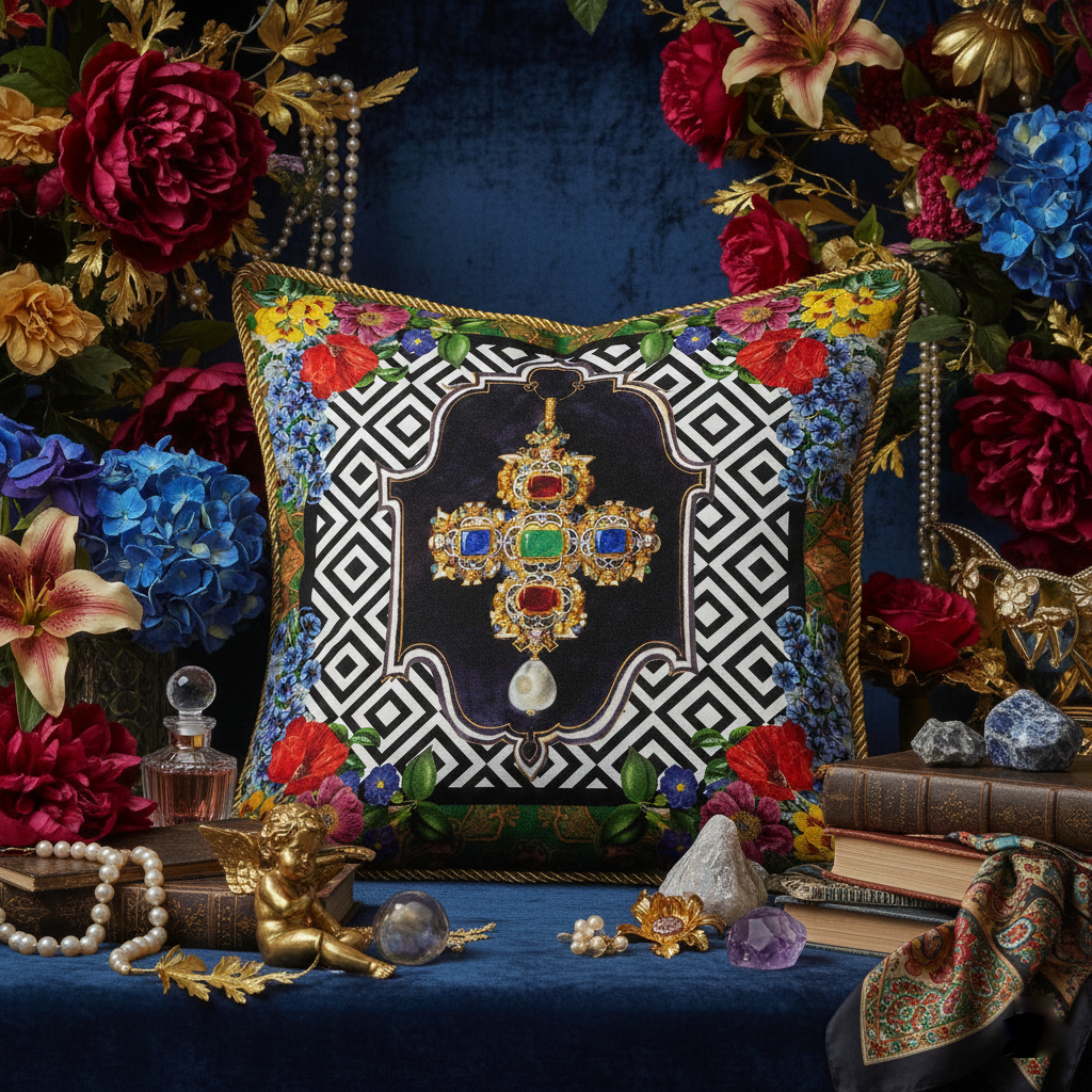 An elegant high-end cushion, with an exclusive design created by Mouchkine Paris, for a chic and sophisticated interior decoration. A different print on the front or back to change the visual according to your mood...