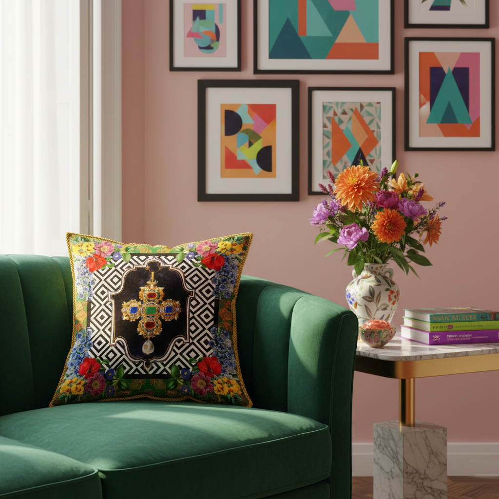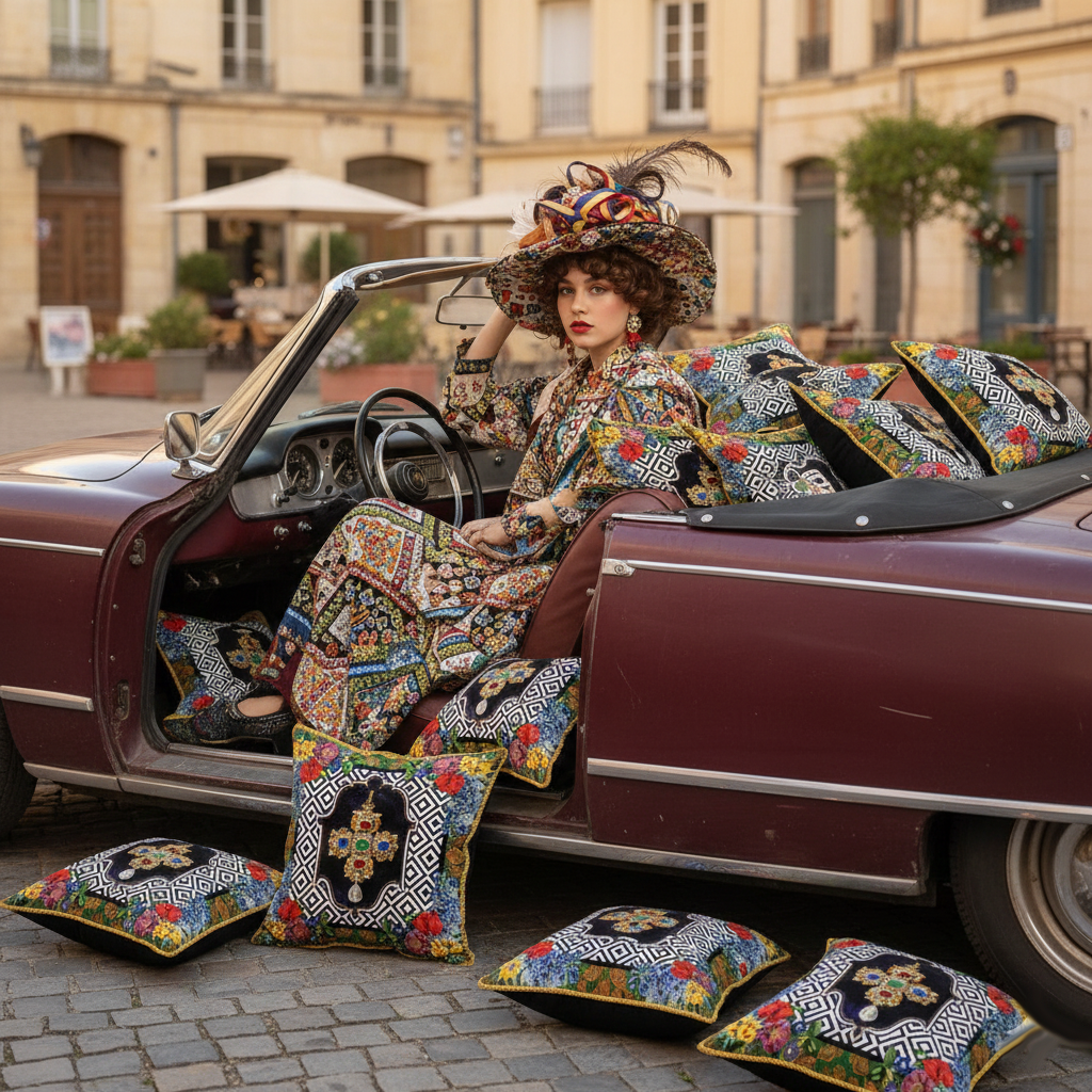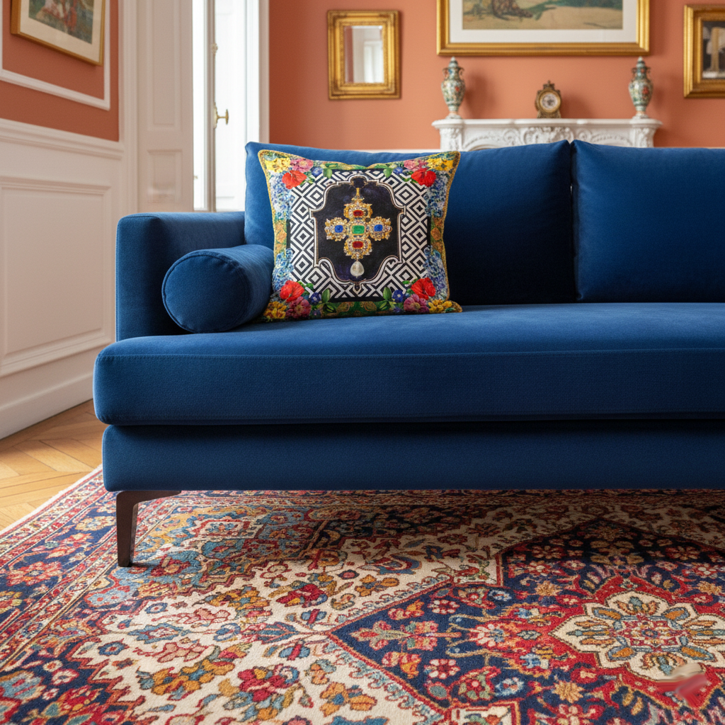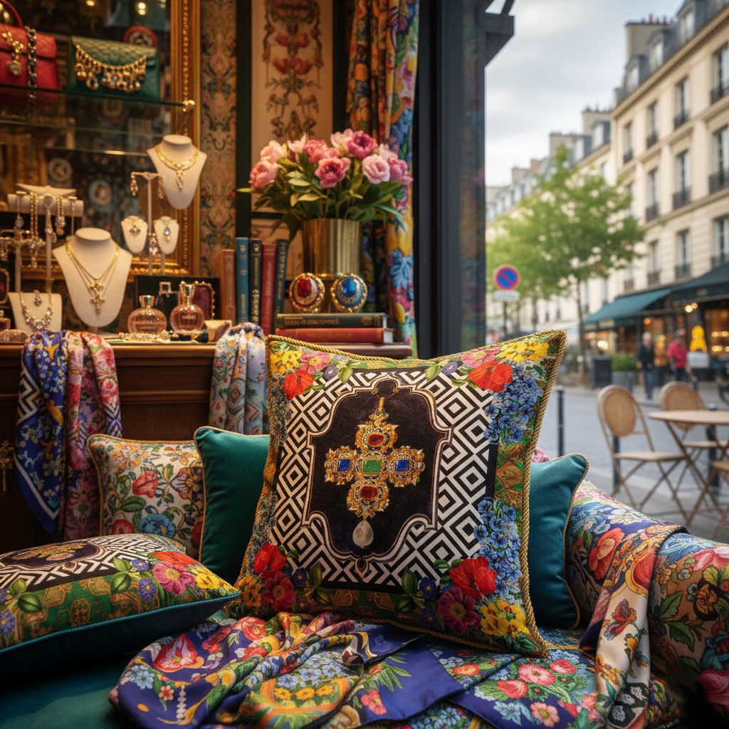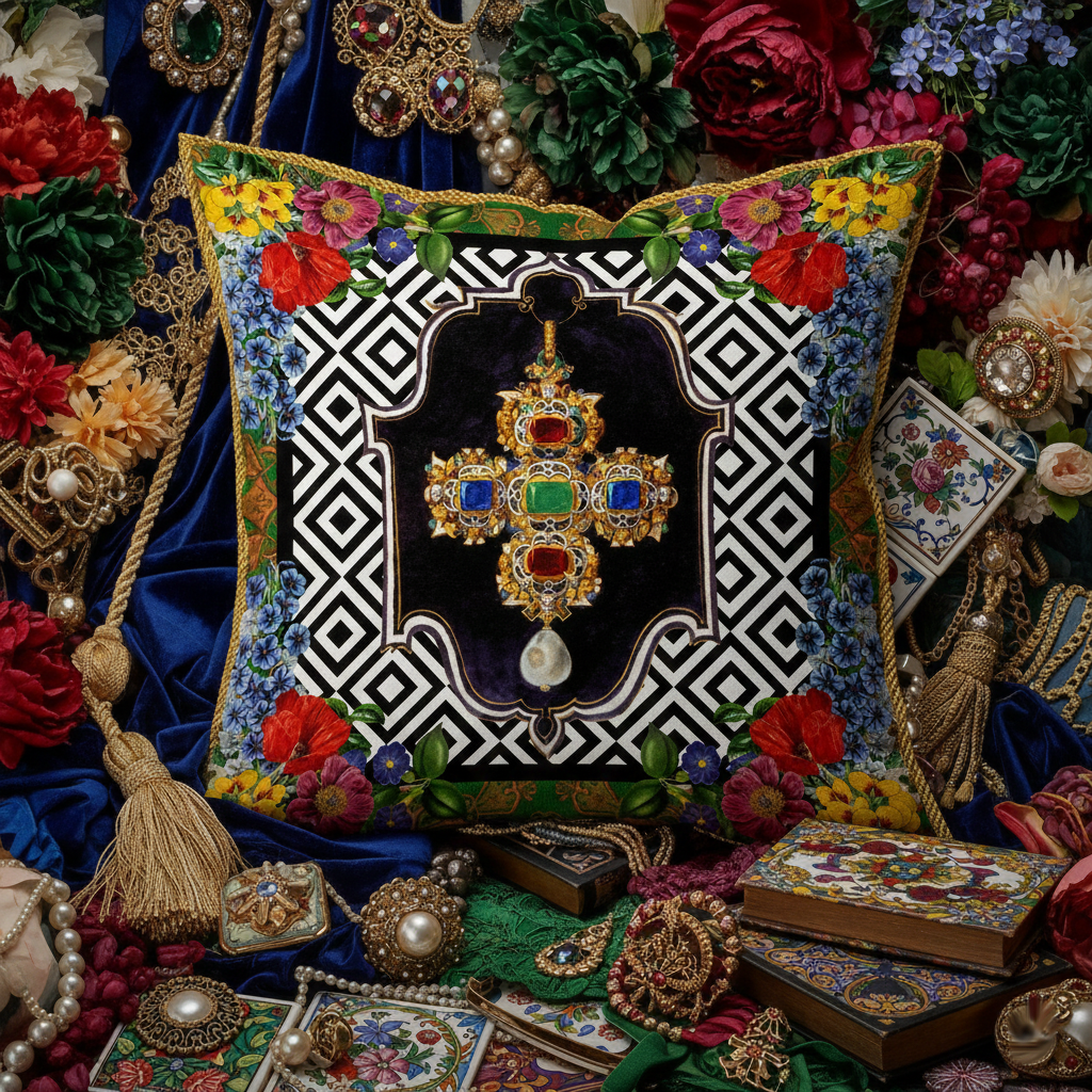 An elegant high-end cushion, with an exclusive design created by Mouchkine Paris, for a chic and sophisticated interior decoration. A different print on the front or back to change the visual according to your mood...