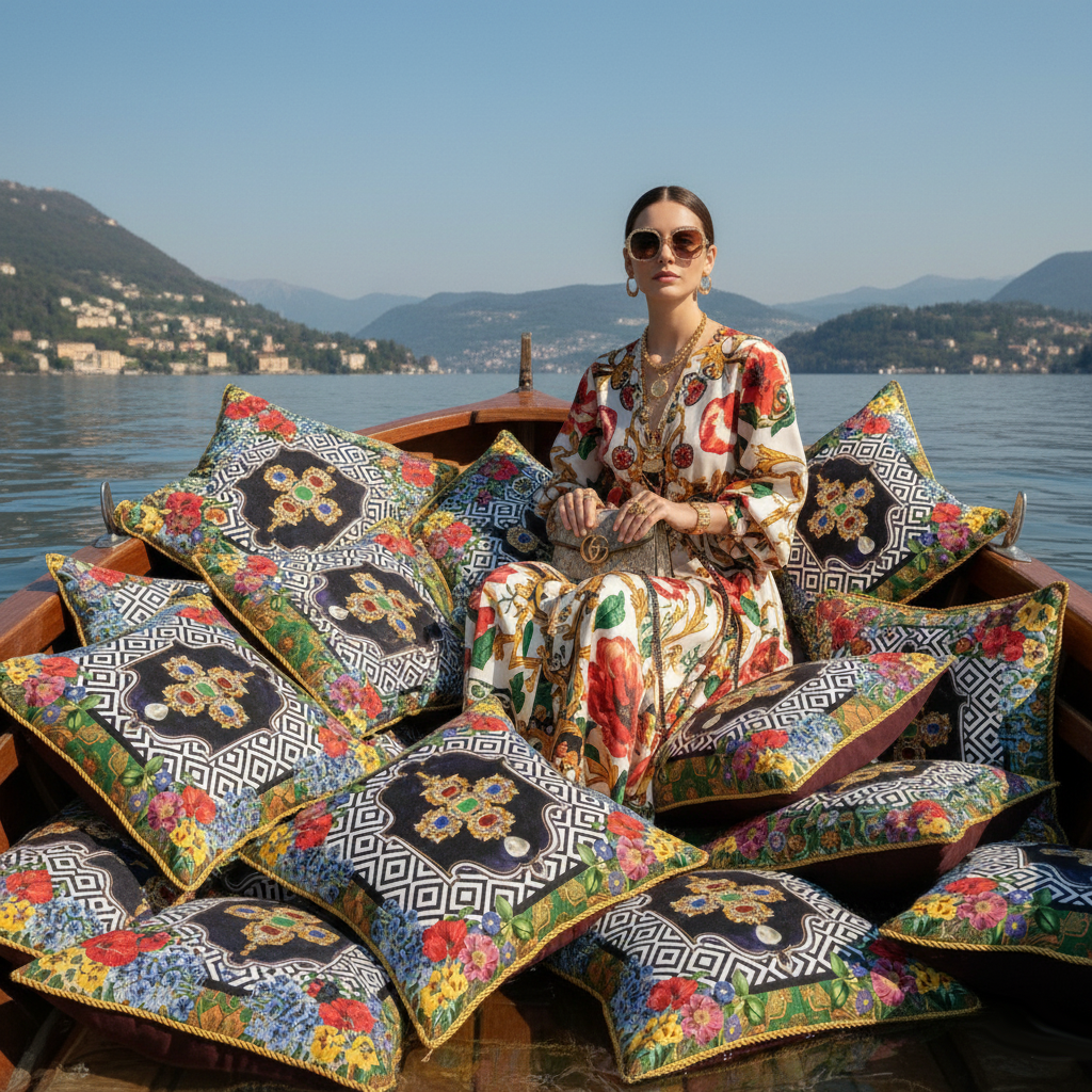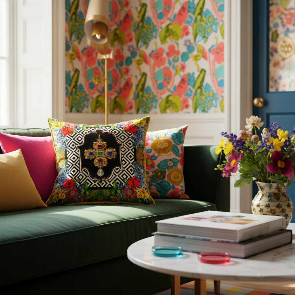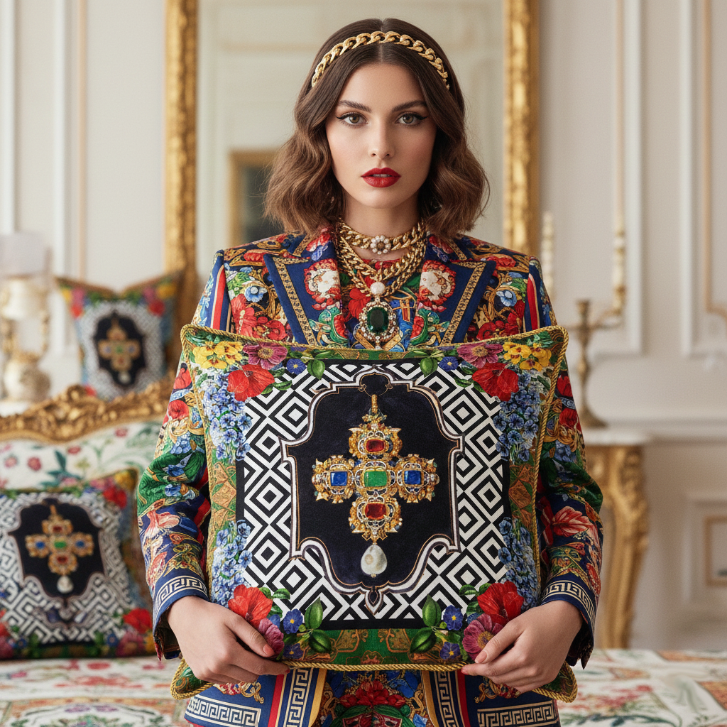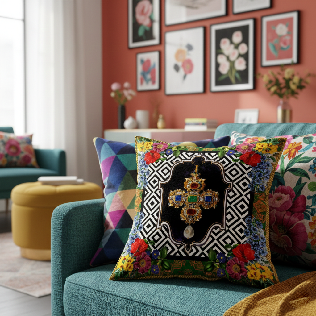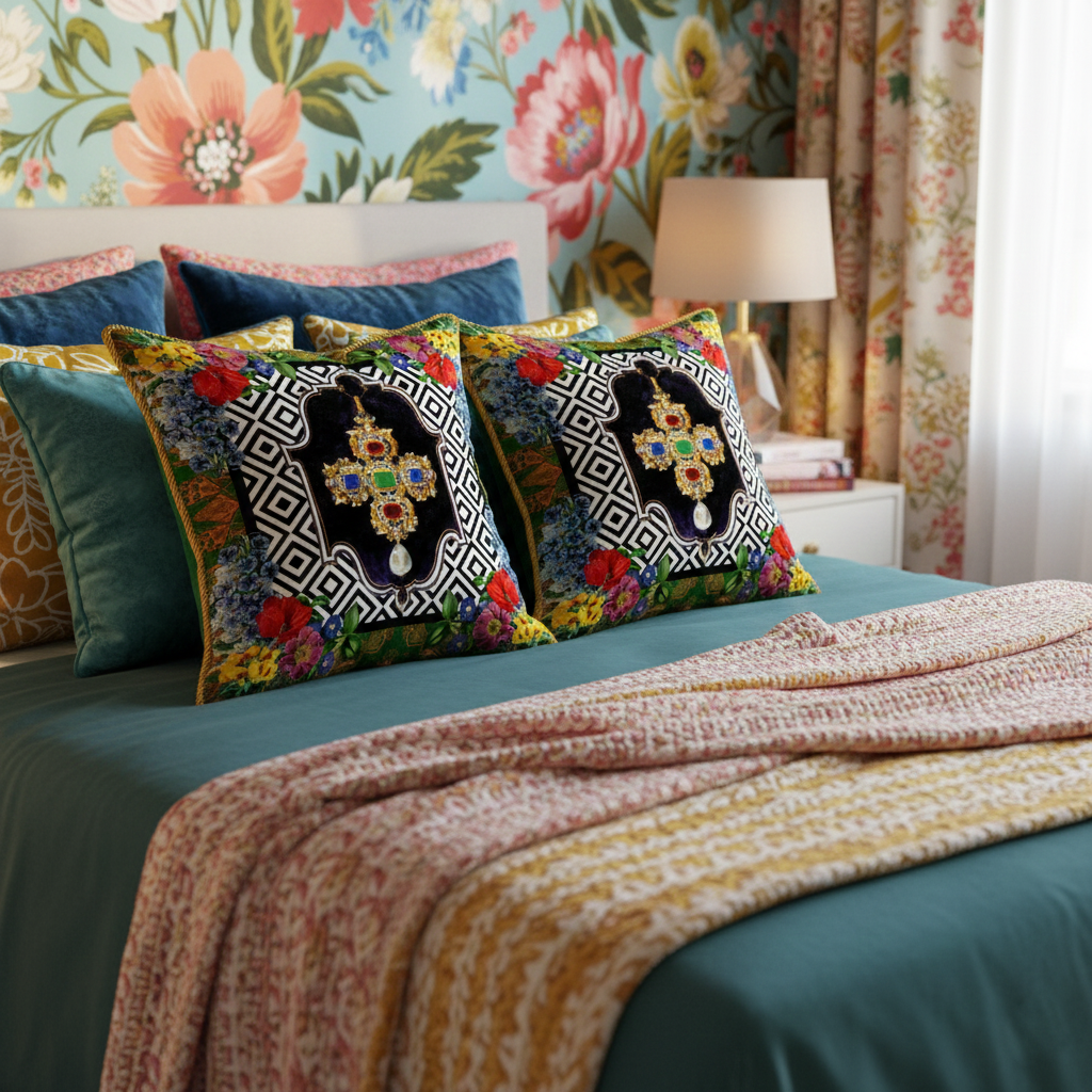 An elegant high-end cushion, with an exclusive design created by Mouchkine Paris, for a chic and sophisticated interior decoration. A different print on the front or back to change the visual according to your mood...