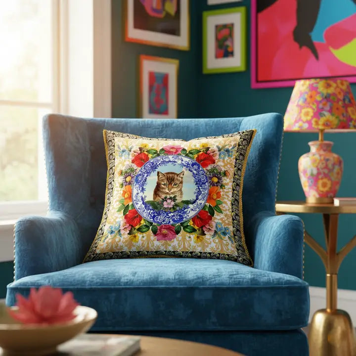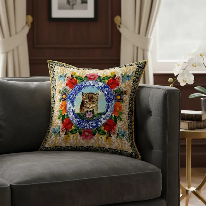 An elegant high-end cushion, with an exclusive design created by Mouchkine Paris, for a chic and sophisticated interior decoration. A different print on the front or back to change the visual according to your mood...