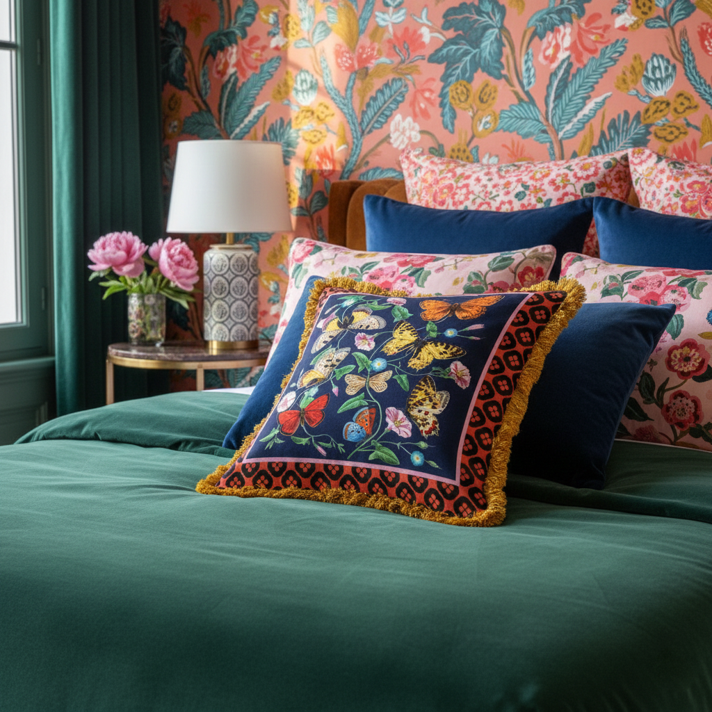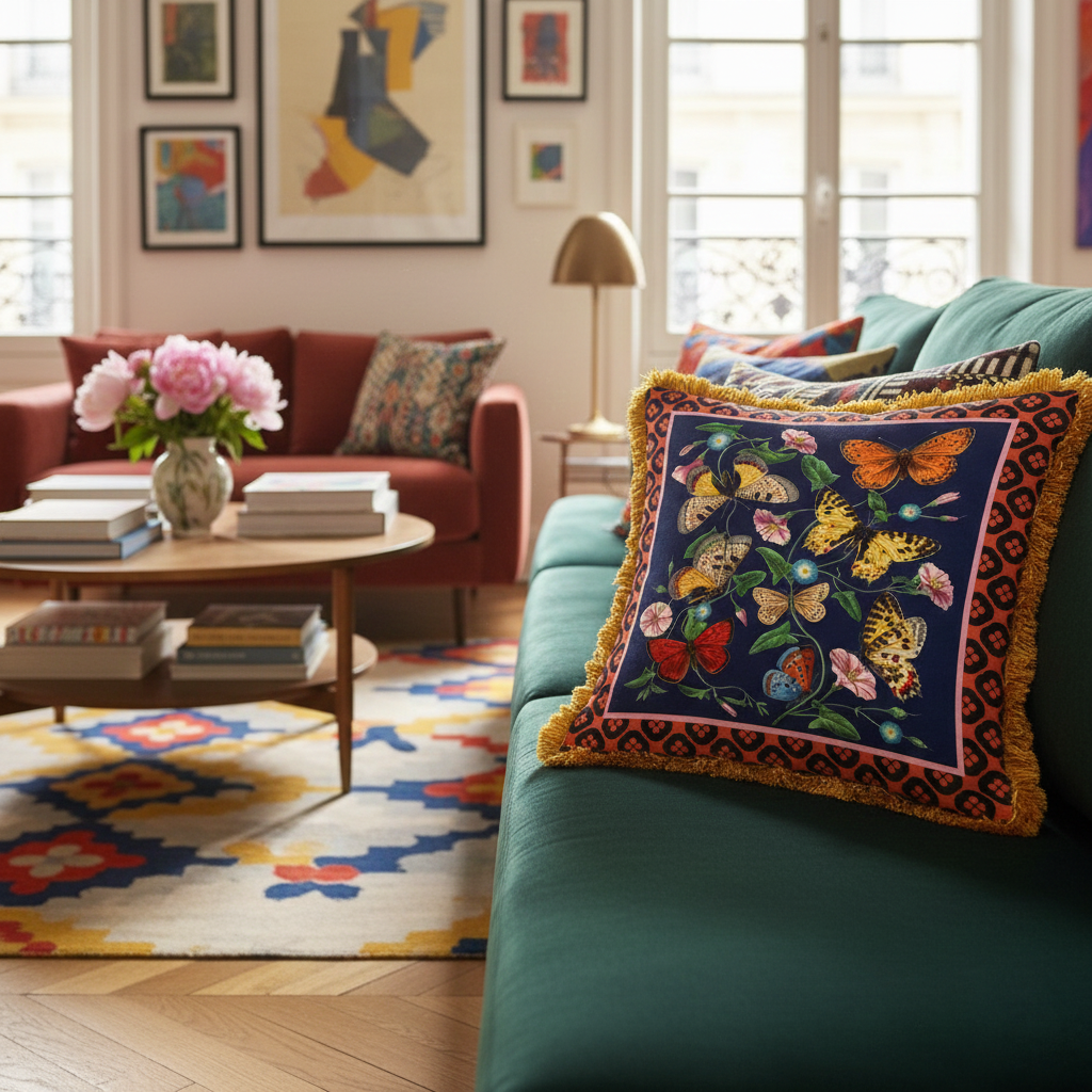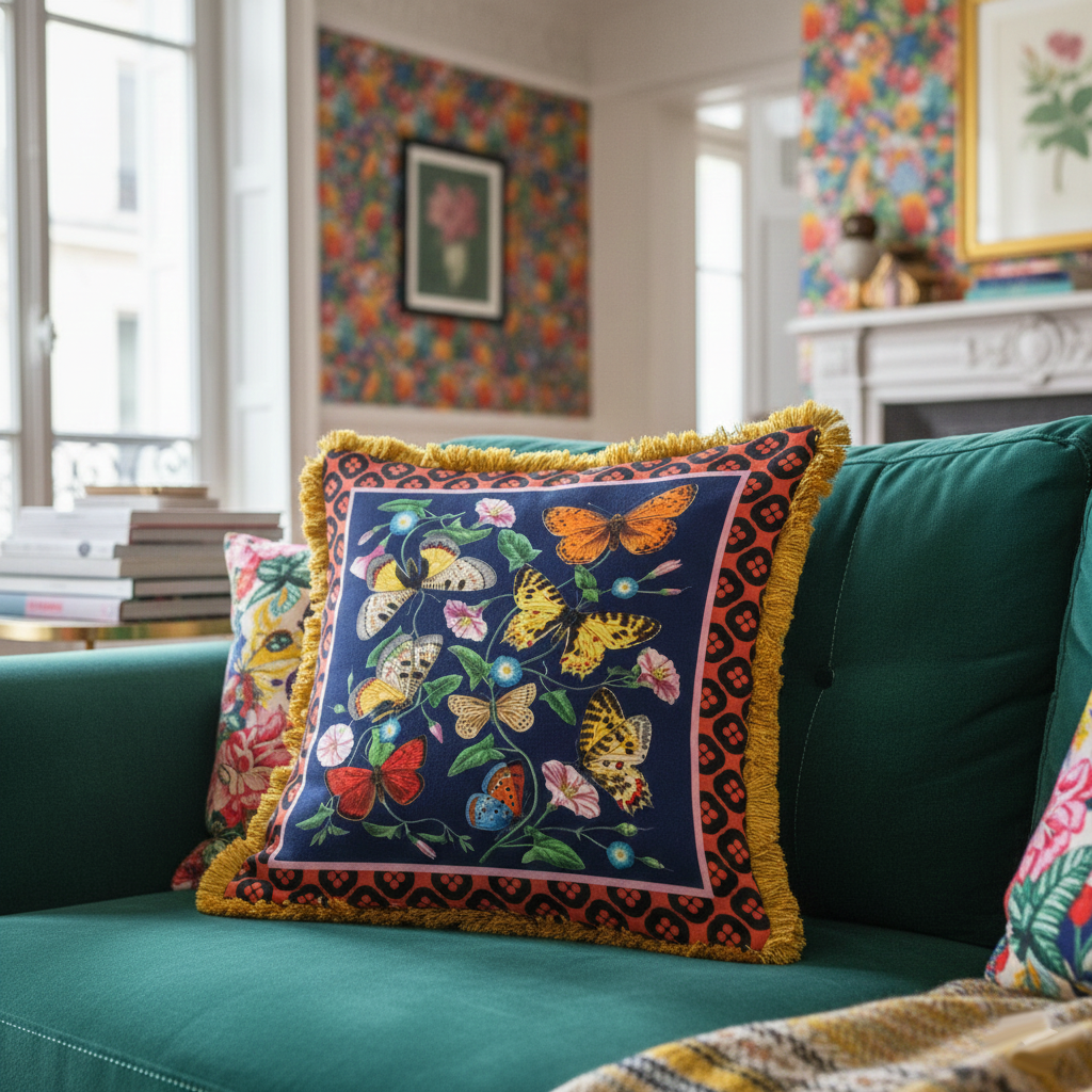 An elegant high-end cushion, with an exclusive design created by Mouchkine Paris, for a chic and sophisticated interior decoration. A different print on the front or back to change the visual according to your mood...