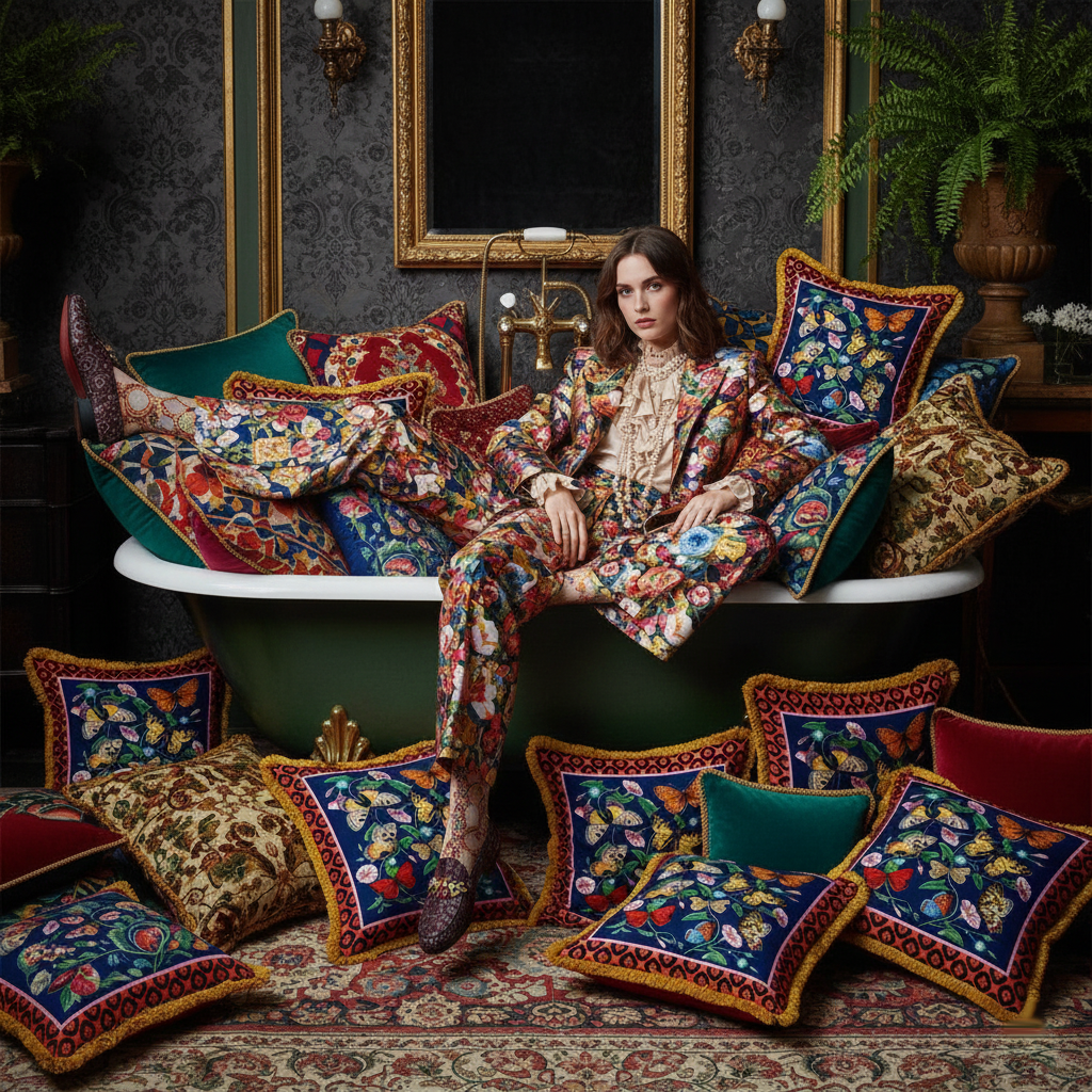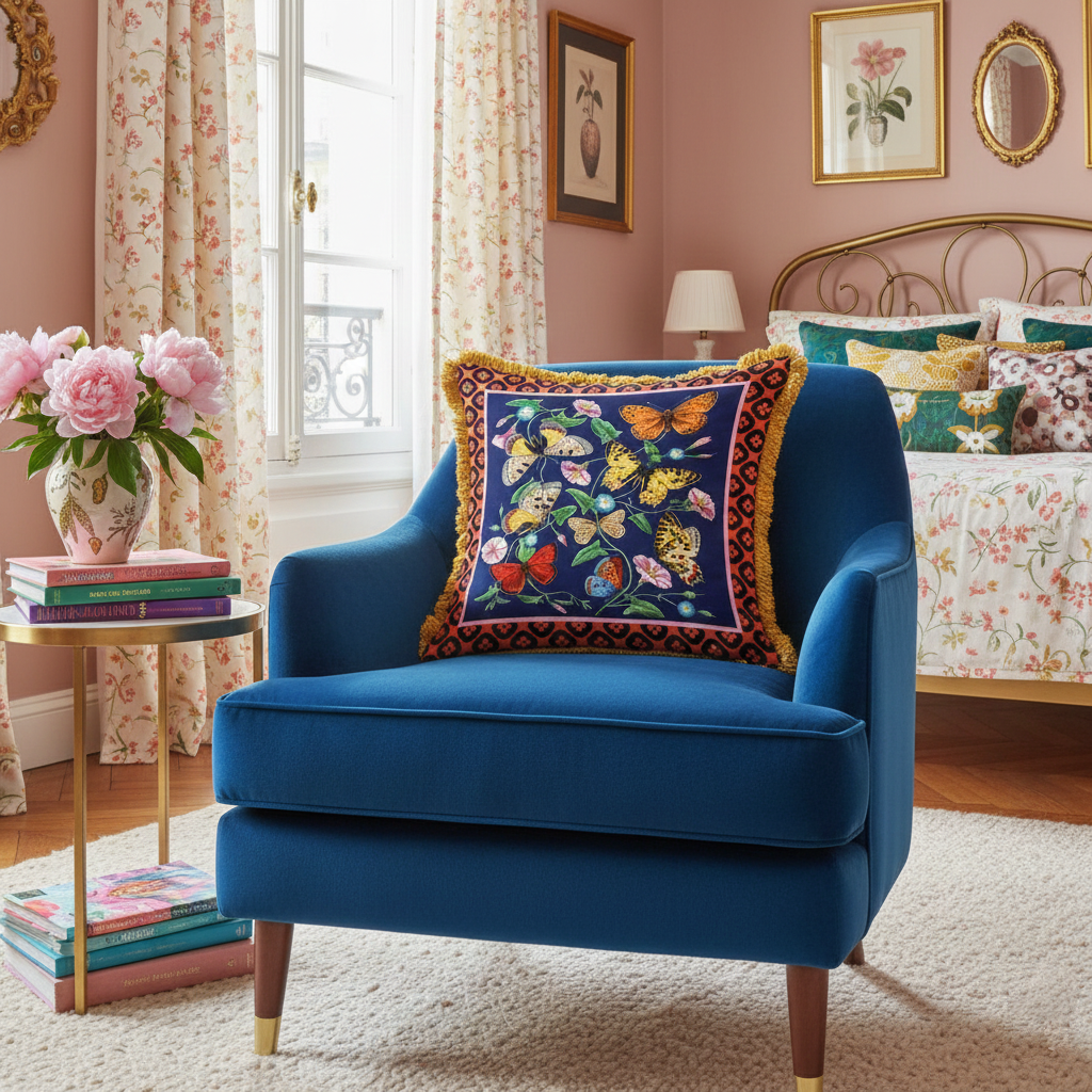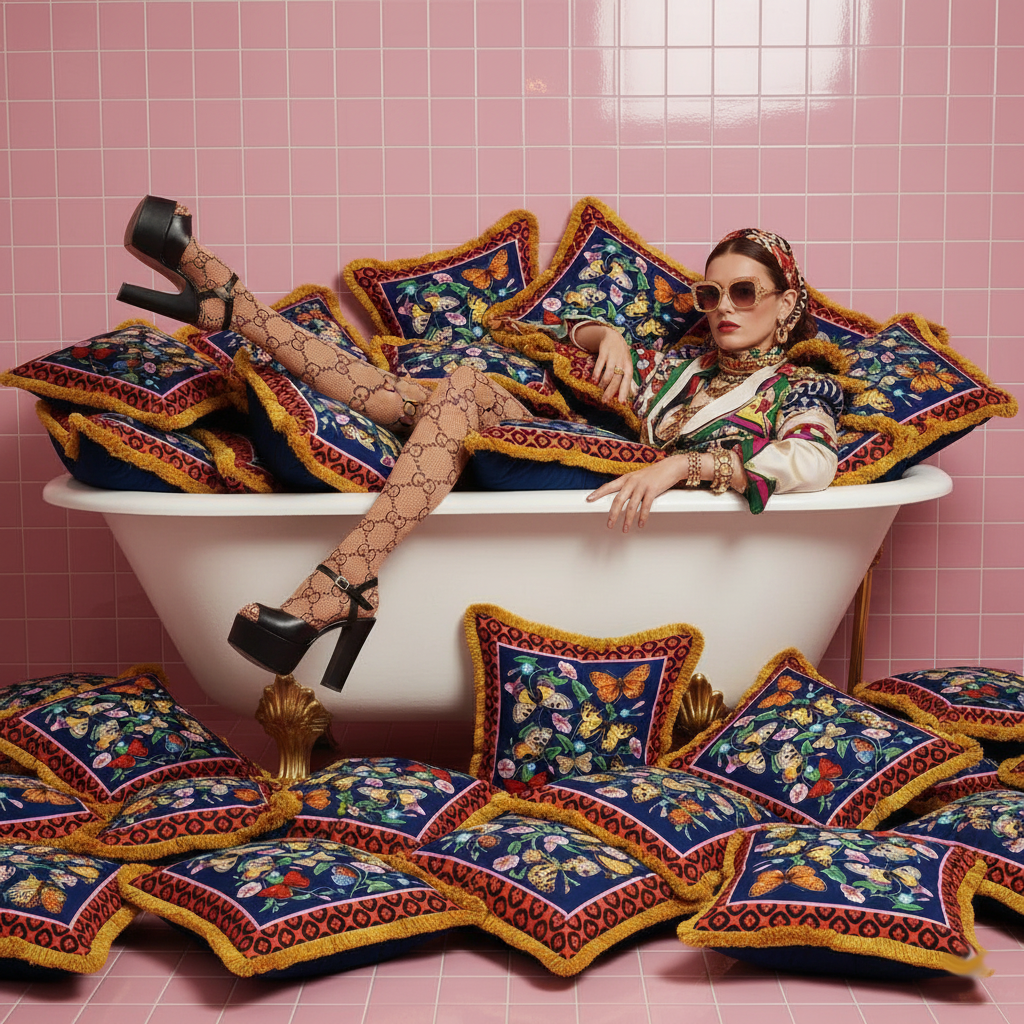 An elegant high-end cushion, with an exclusive design created by Mouchkine Paris, for a chic and sophisticated interior decoration. A different print on the front or back to change the visual according to your mood...