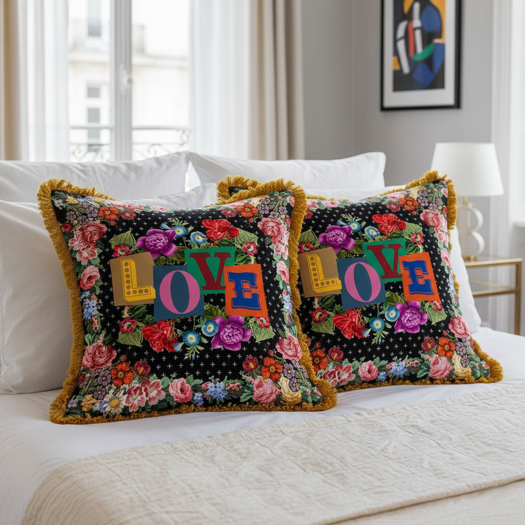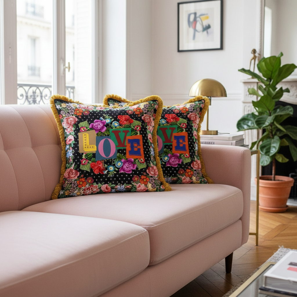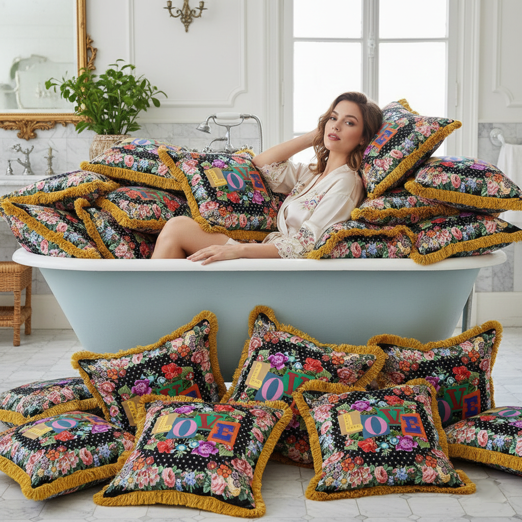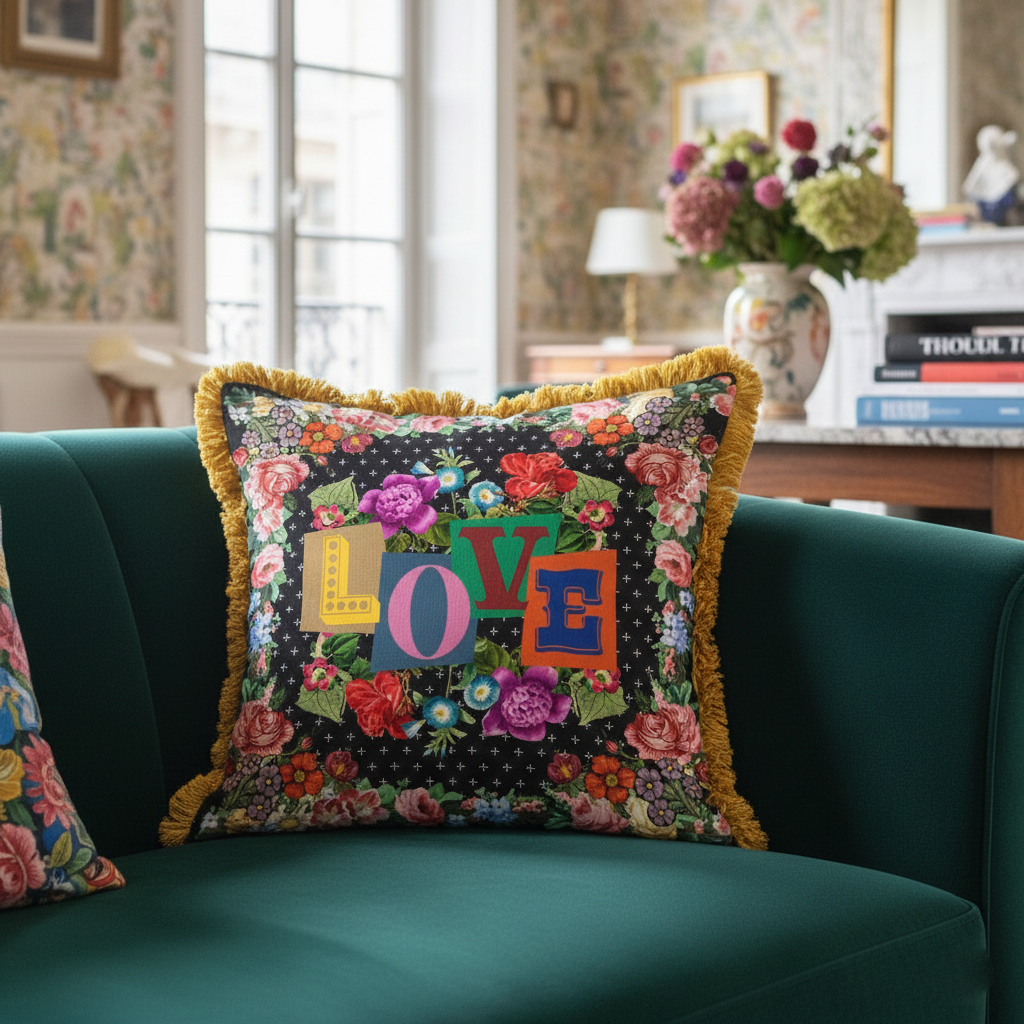 housse de coussin trianon 50x50cm LUXE passepoil brosse or