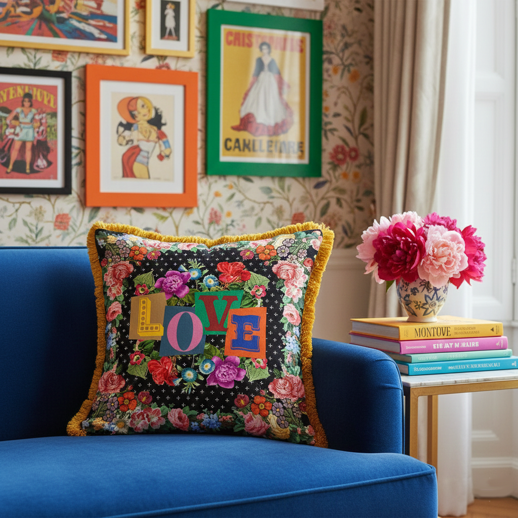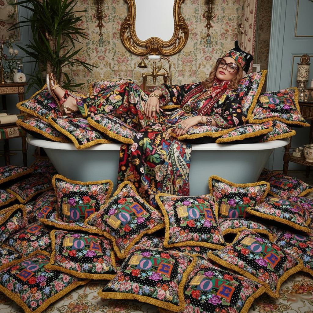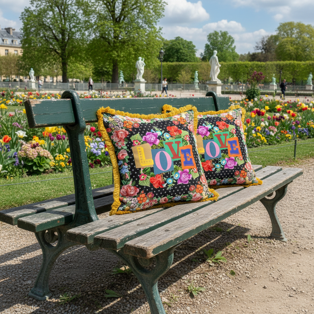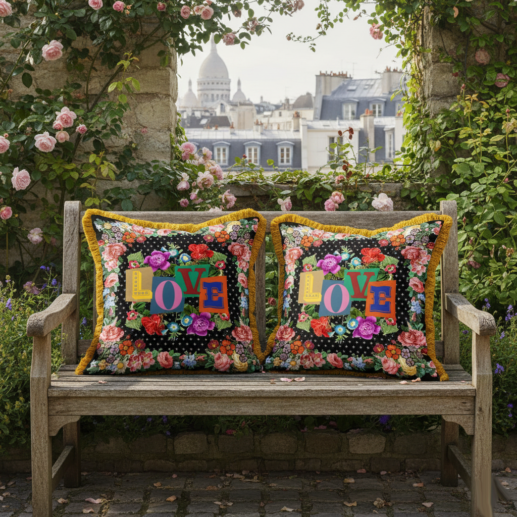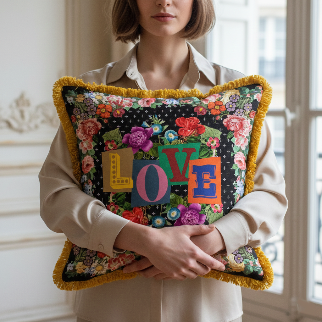 housse de coussin trianon 50x50cm LUXE passepoil brosse or