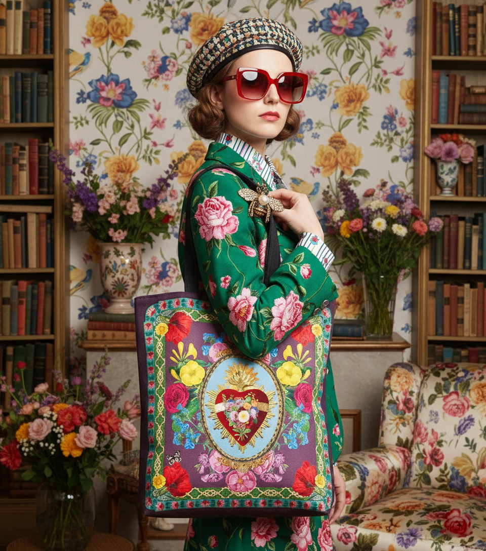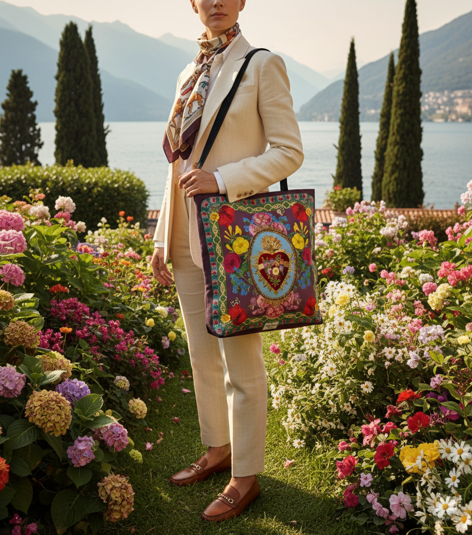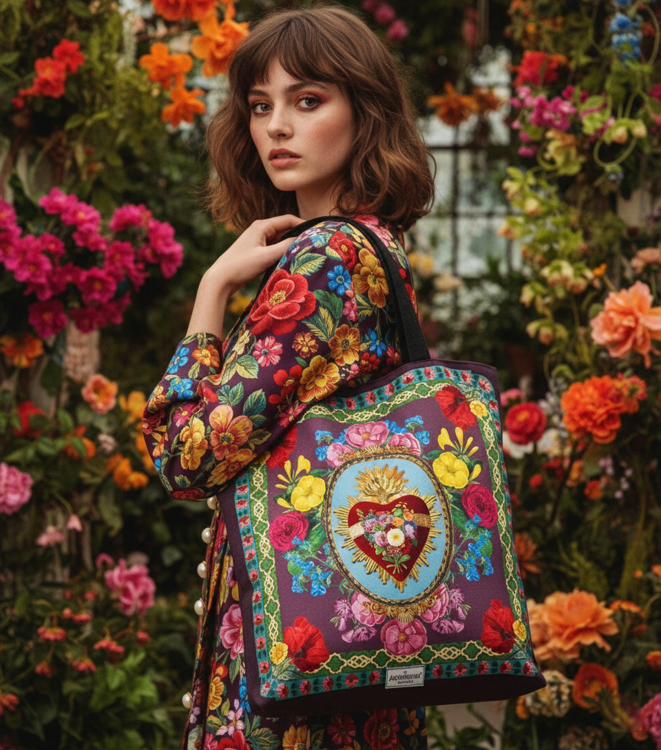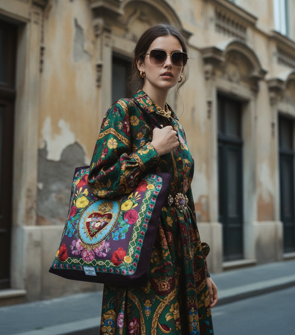 A stunning designer bag for a unique couture style, printed on both sides on high quality Italian velvet. The essential fashion accessory to enhance each of your outfits.