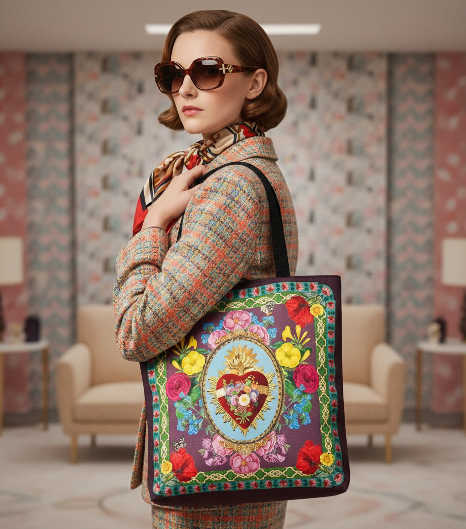 Un sac de créateur pour un style couture unique, imprimé recto-verso sur velours italien haute qualité. L'accessoire de mode indispensable pour sublimer chacune de vos tenues.