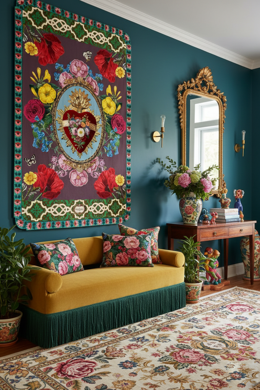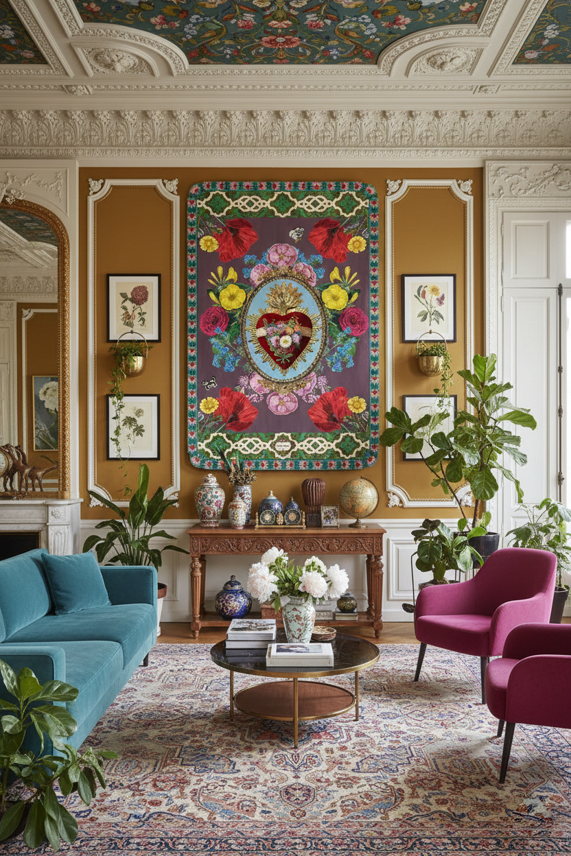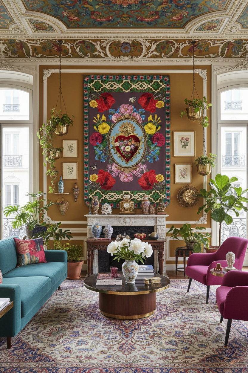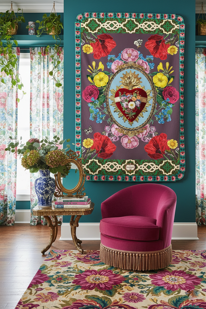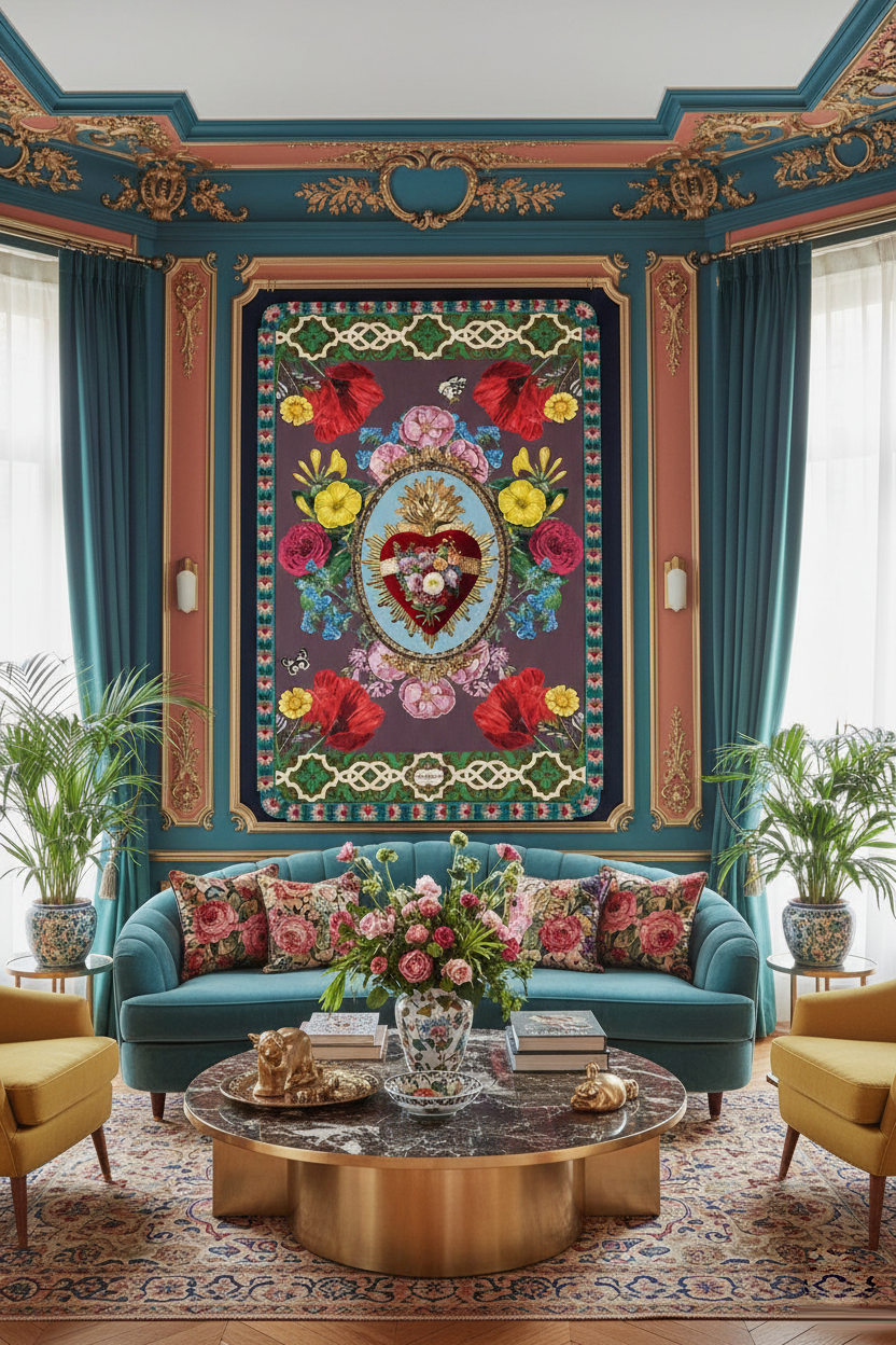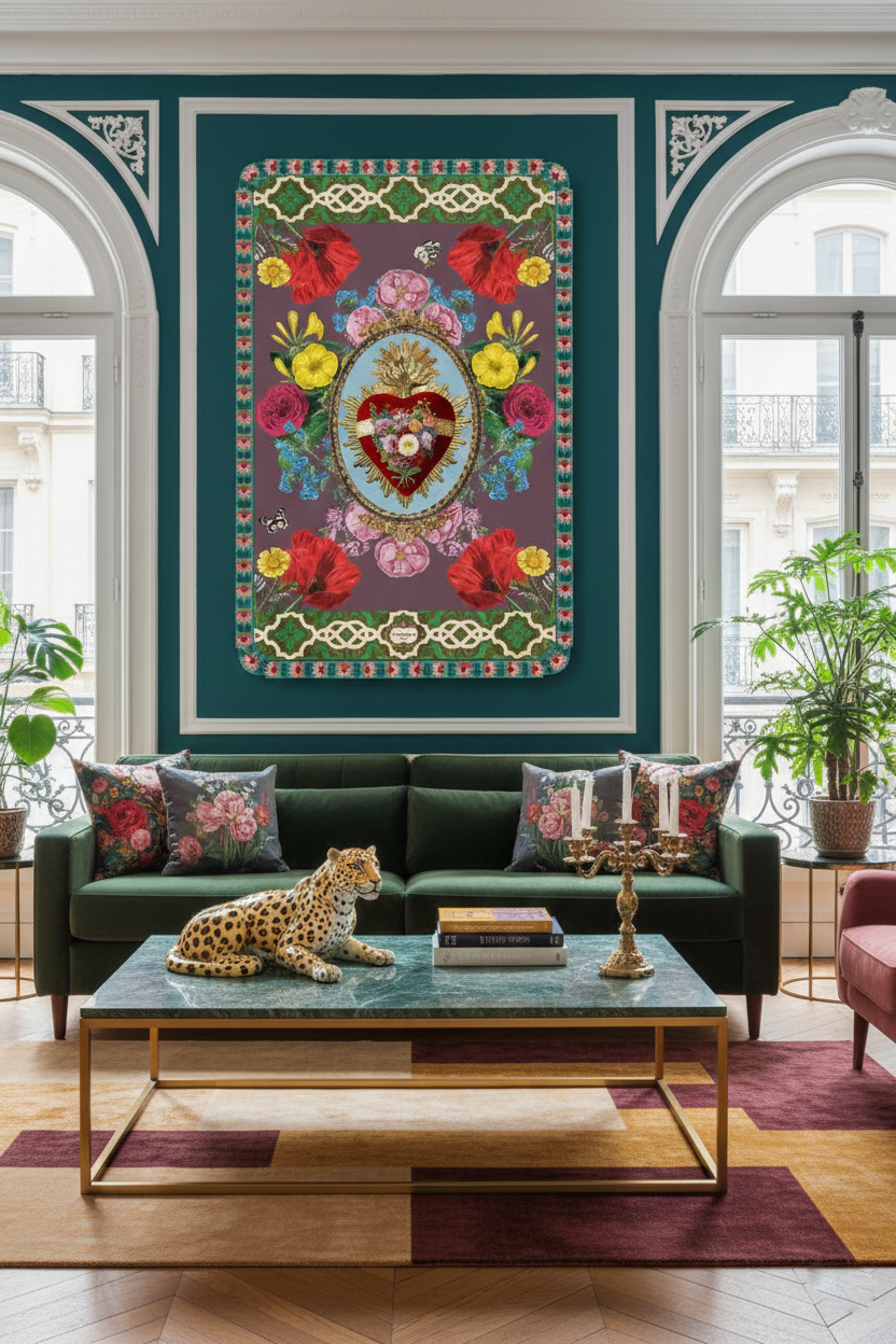 Une tenture haut de gamme tout en élégance, avec un design exclusif crée par Mouchkine Paris, pour une décoration intérieure chic et sophistiquée. L'avantage d'une telle tenture est que malgré sa taille imposante, elle reste très légère. Facile à fixer, elle fera grand effet soit avec une petite tringle en bois, ou même directement fixée au mur avec quelques clous dorés tapissier.